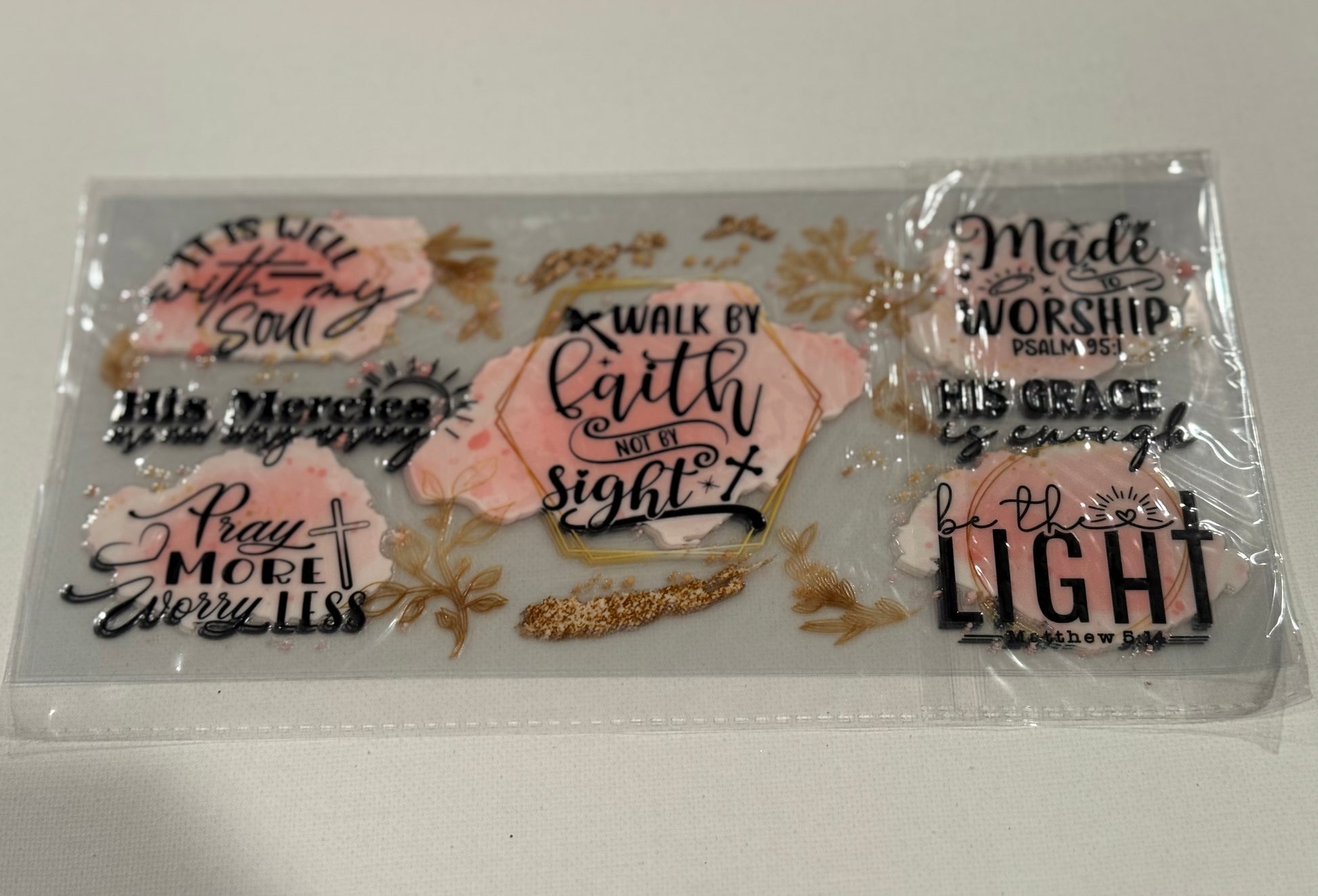 Our UV DTF glass can wraps measure 9.4" x 4.3" and are designed to fit most standard glass cans and tumblers.